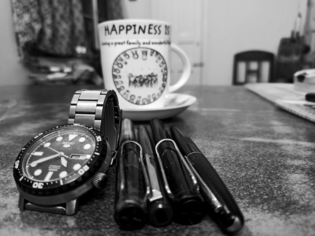 Pens , coffee and watch